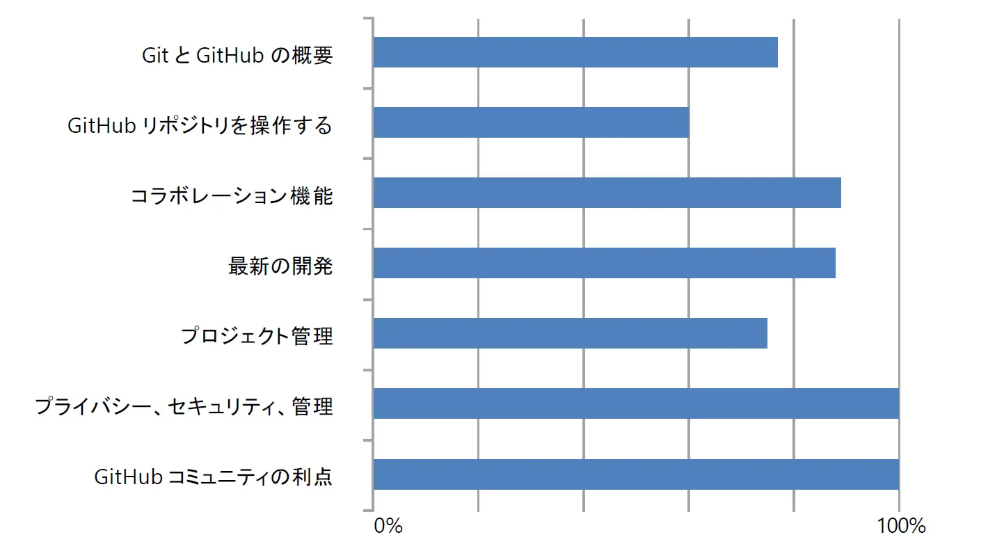 GitHub は利用しているけど、リポジトリの利用やIssue、Pull Request のように一部の機能しか利用していない、みたいな方であれば、GitHub の他製品について学習する必要があります。MS Learn や認定プラクティス、実際に手を動かす期間を含め1~2週間程度の学習期間となります。